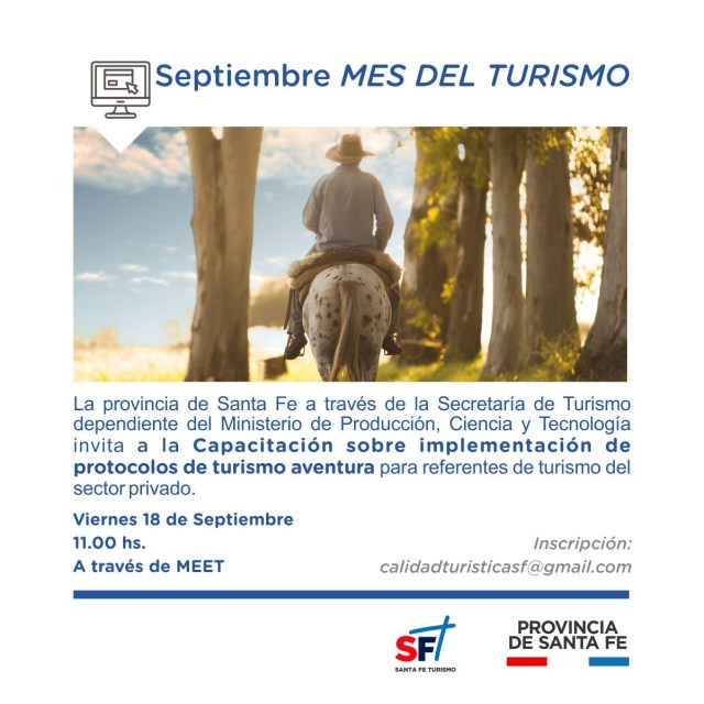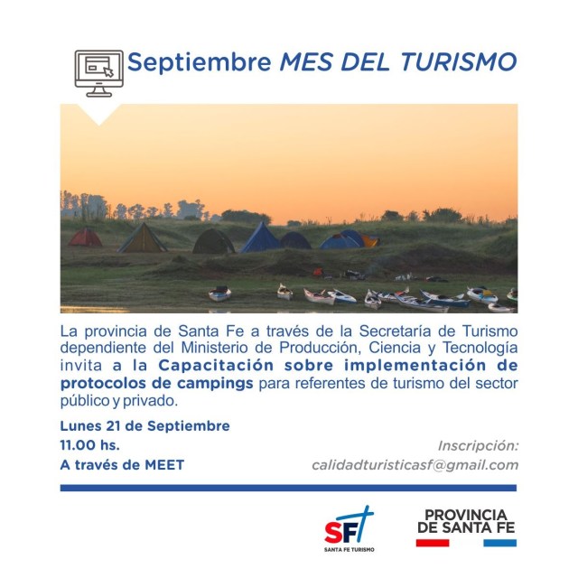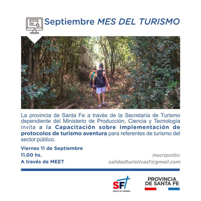 La Secretaría de Turismo de la Provincia de Santa Fe convoca a todos los involucrados en la actividad, a las siguientes capacitaciones en línea sobre implementación de protocolos en diferentes áreas de la actividad turística:
