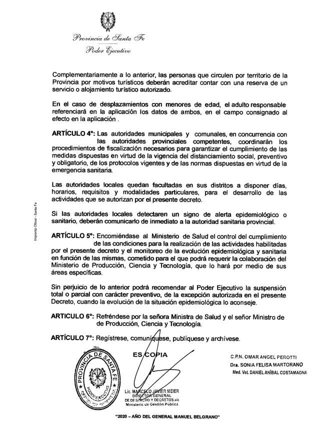 Los turistas que se trasladen por el territorio provincial, sean residentes en Santa Fe o vengan de otra provincia, deberán: